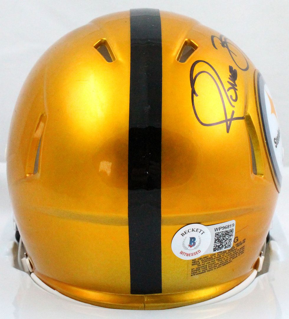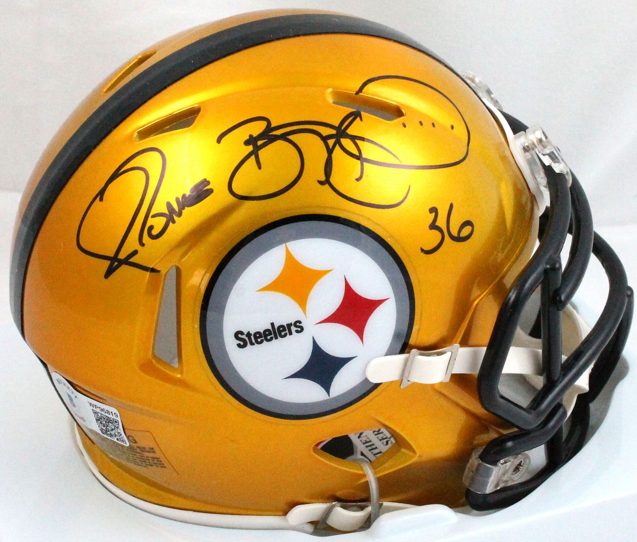 Riddell Pittsburgh Steelers Flash Alternate Speed mini helmet has been hand-signed by Jerome Bettis (HOF).