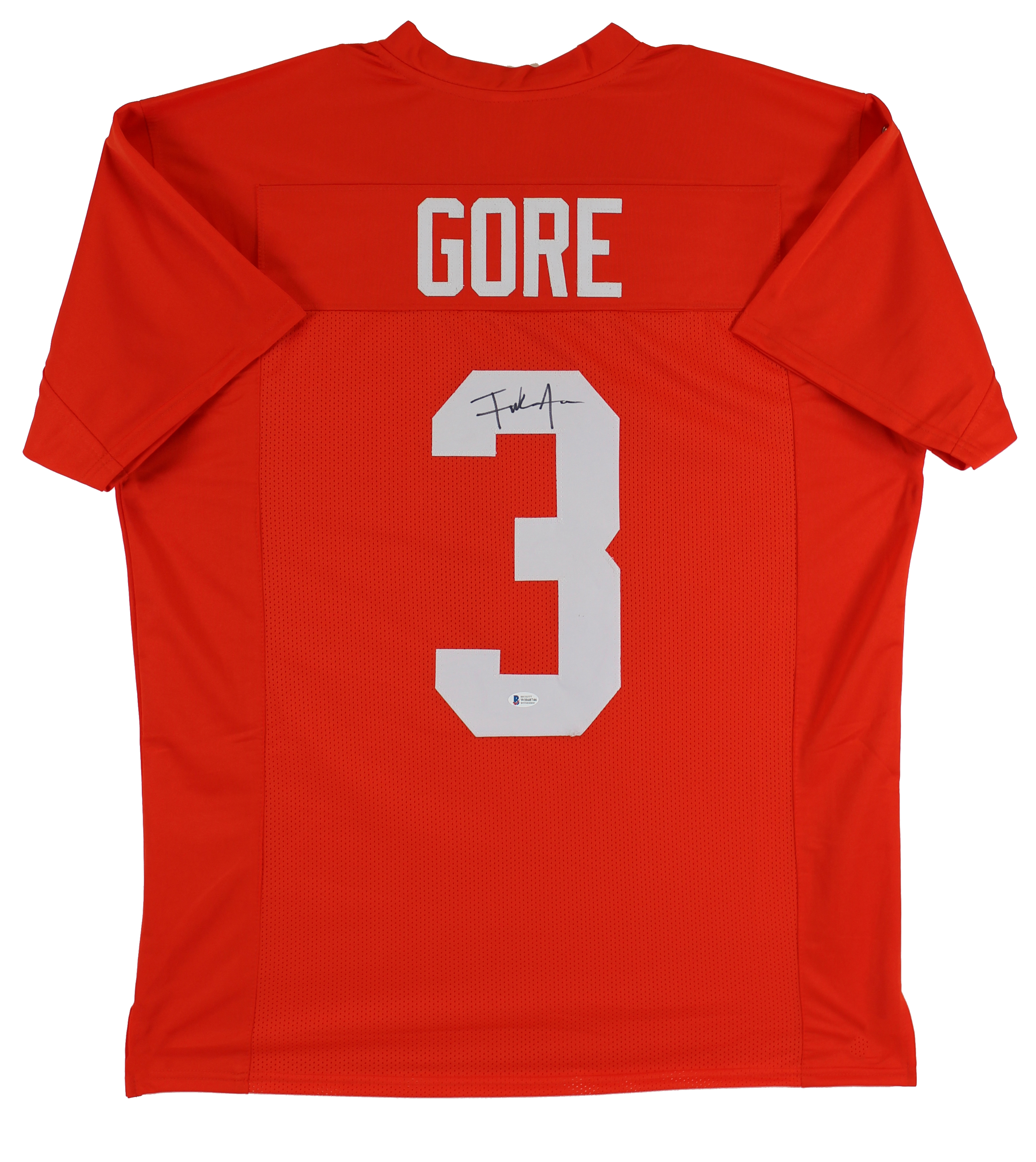 Custom style jersey. Everything is sewn on, size XL. Hand-signed by Frank Gore.
