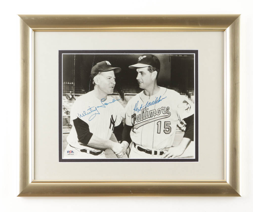 Custom frame measures 13" x 16" and contains a photo that has been hand-signed by Whitey Ford (D. 2020, New York Yankees, HOF) and Hoyt Wilhelm (D. 2002, Baltimore Orioles, HOF).