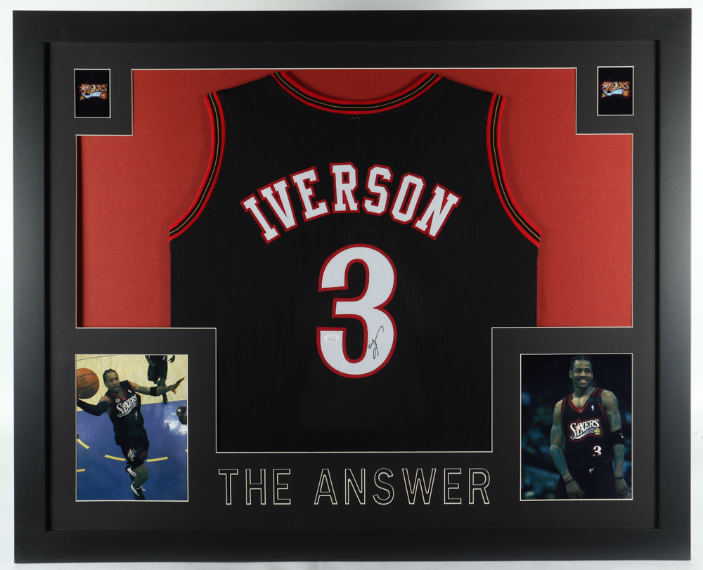 Custom frame measures 35" x 43" in size and features a jersey that has been hand-signed by Allen Iverson (HOF).