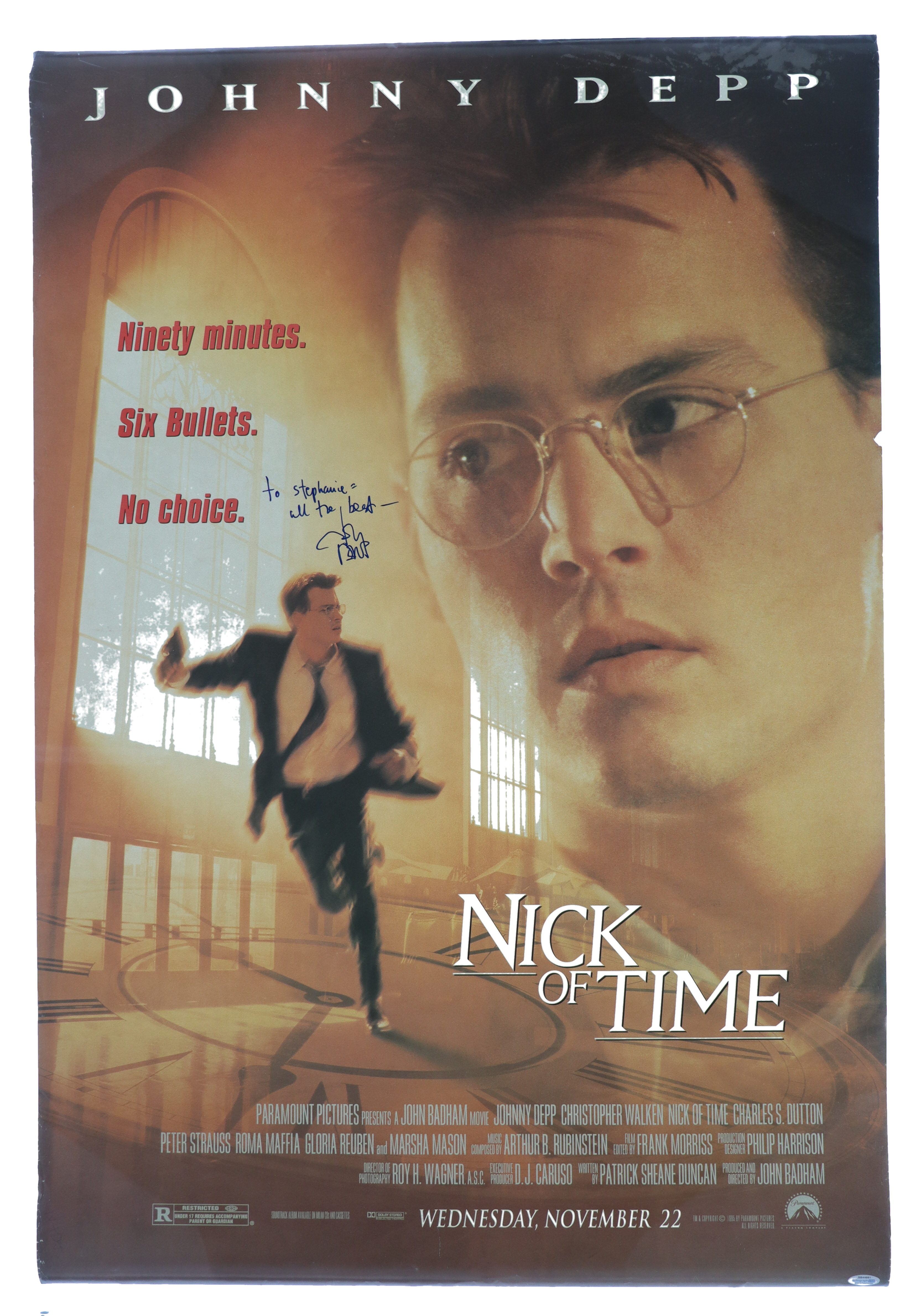 Johnny Depp Signed "Nick of Time" 27x40 Movie Poster Inscribed "All the Best" (AutographCOA)