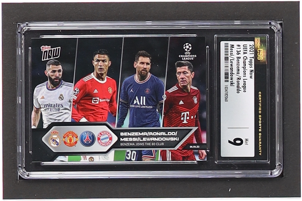 Karim Benzema / Robert Lewandowski / Lionel Messi / Cristiano Ronaldo 2021-22 Topps Now UEFA Champions League #136 (CSG 9)