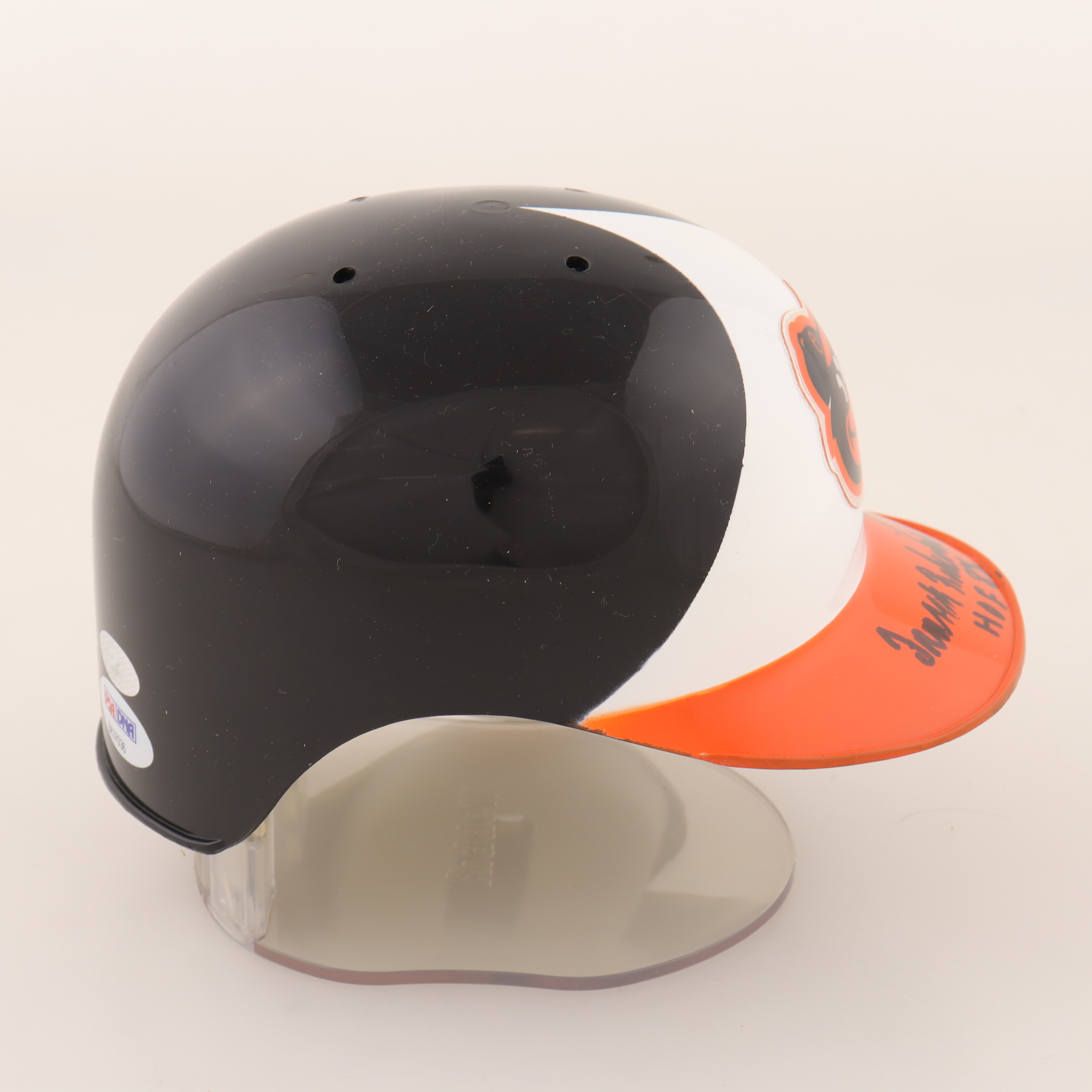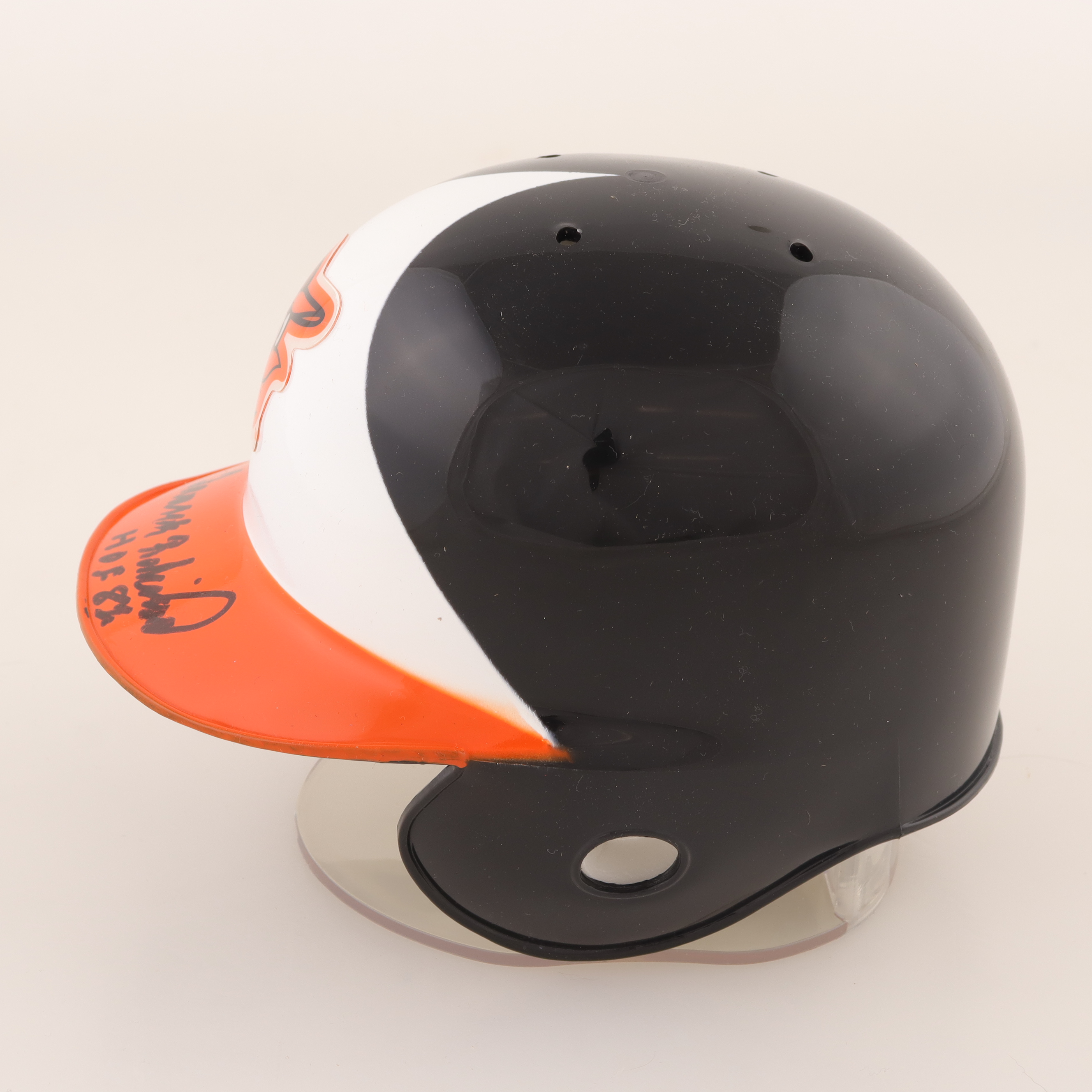 Rawlings Baltimore Orioles mini batting helmet. Hand-signed and inscribed by Frank Robinson (D. 2019, HOF).