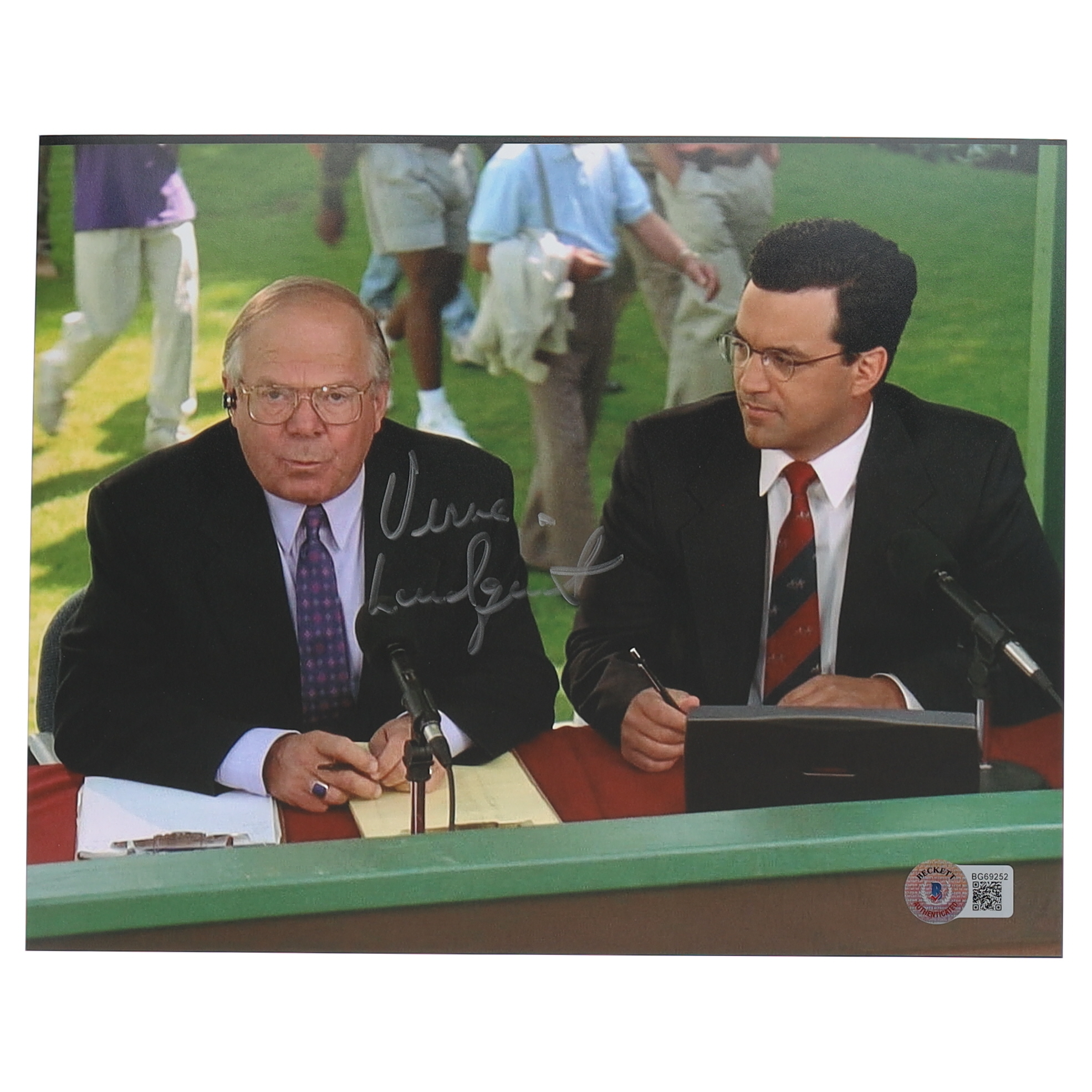 Photo measures 8" x 10" in size and has been hand-signed by Verne Lundquist.