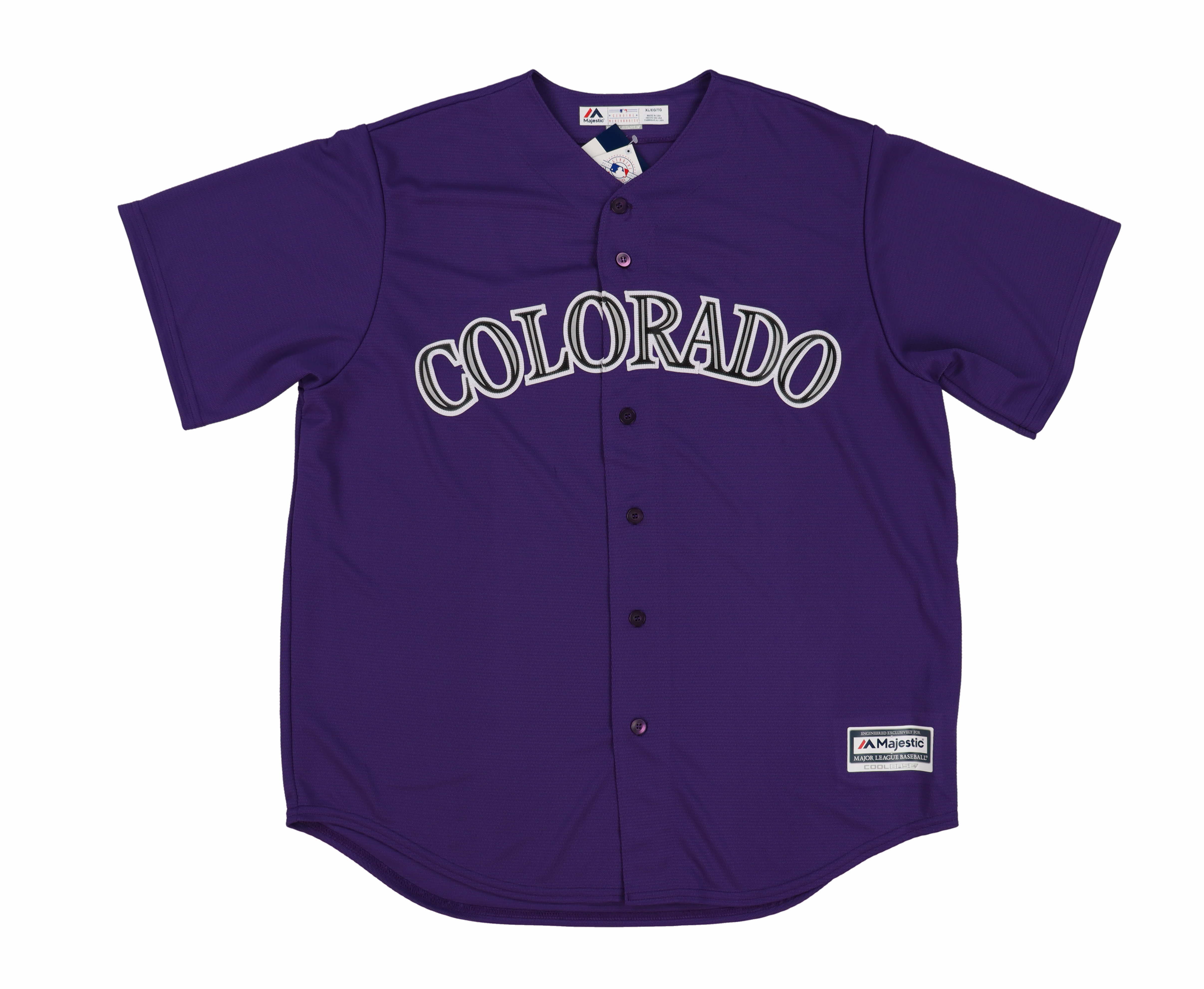 Majestic On-field style jersey. Everything stitched on, size XL. Hand-signed by Trevor Story.