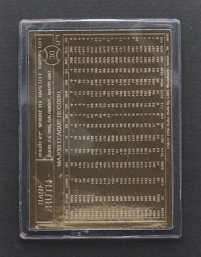 Babe Ruth 1996 CMG Worldwide 23Kt Gold Card #30