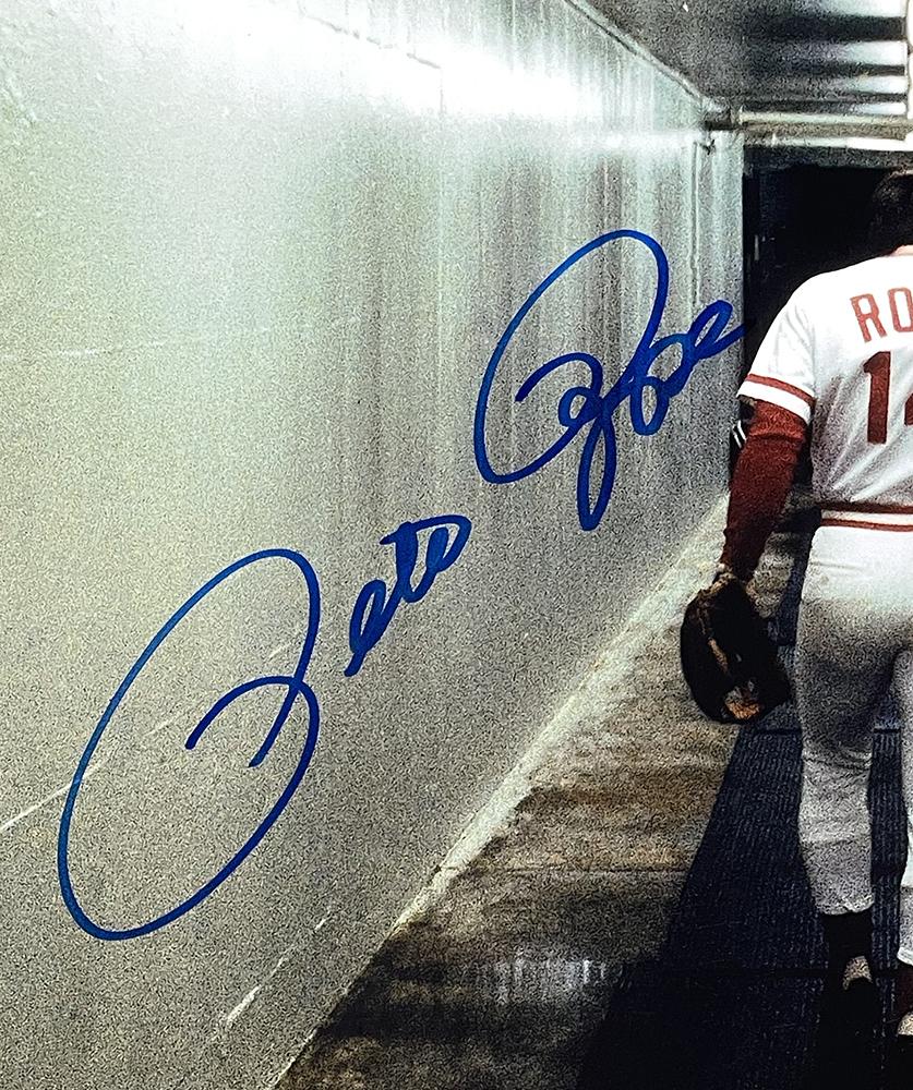 Photo measures 8" x 10" in size and has been hand-signed by Pete Rose (Cincinnati Reds, HOF).