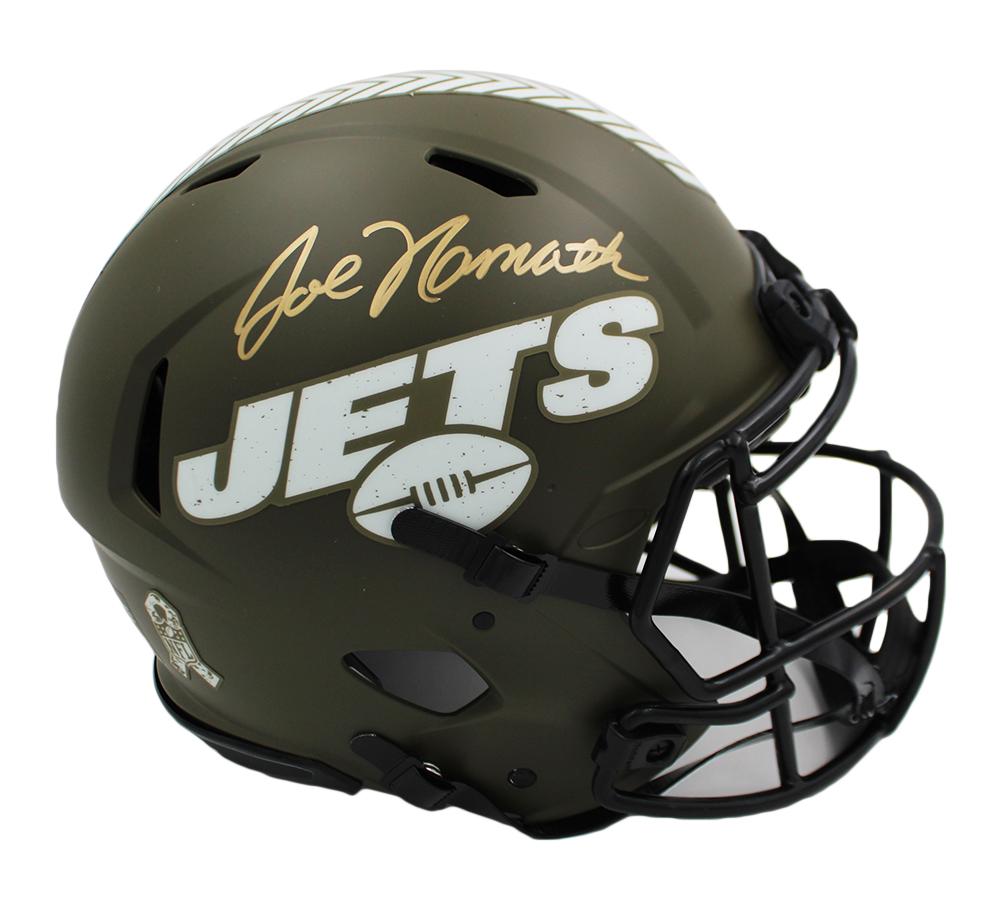 Riddell New York Jets Full-Size Authentic On-Field Salute to Service Alternate Speed Helmet. Hand-signed by Joe Namath (HOF).