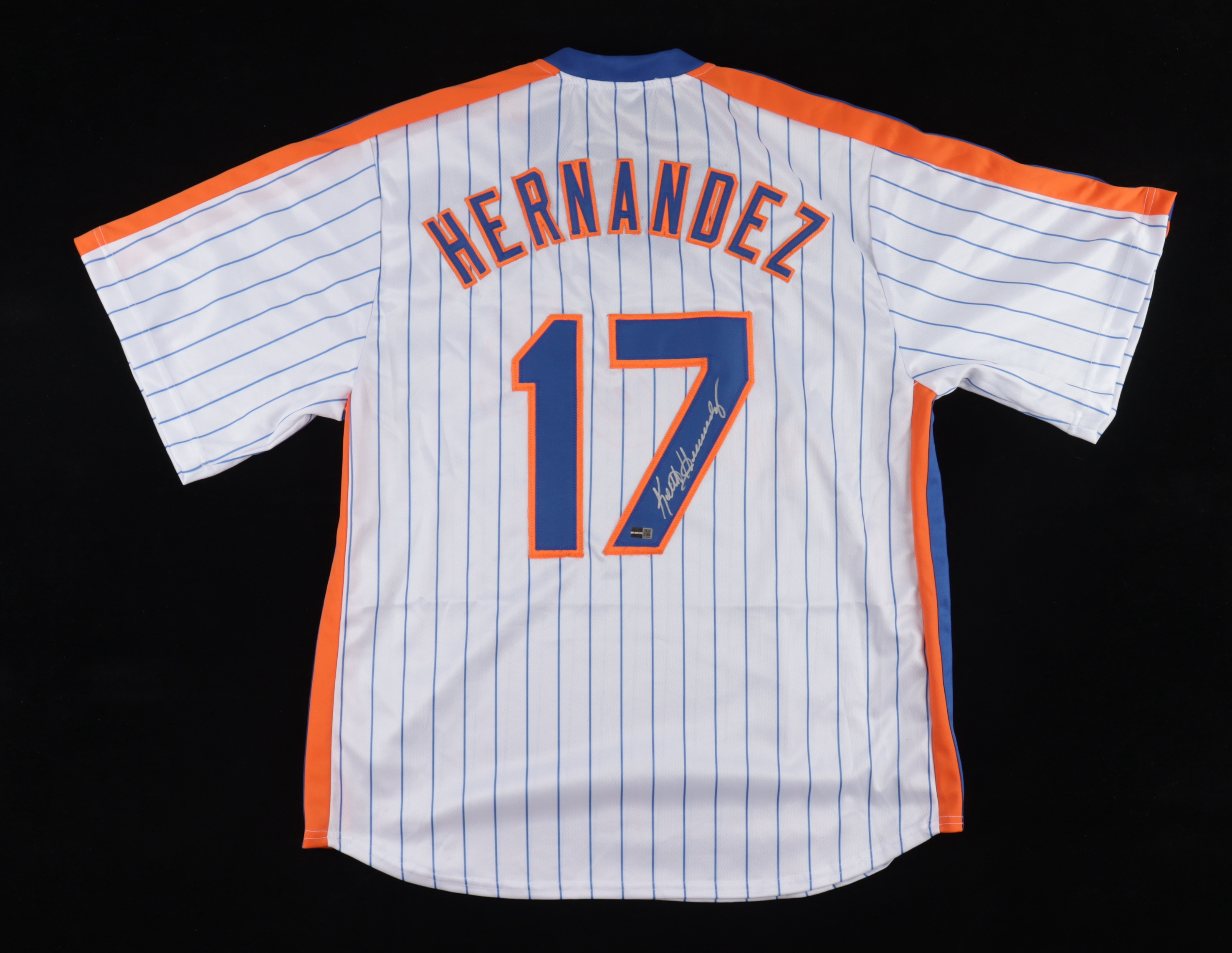 Custom on-field style jersey. Everything is sewn on, size XL. Hand-signed by Keith Hernandez.