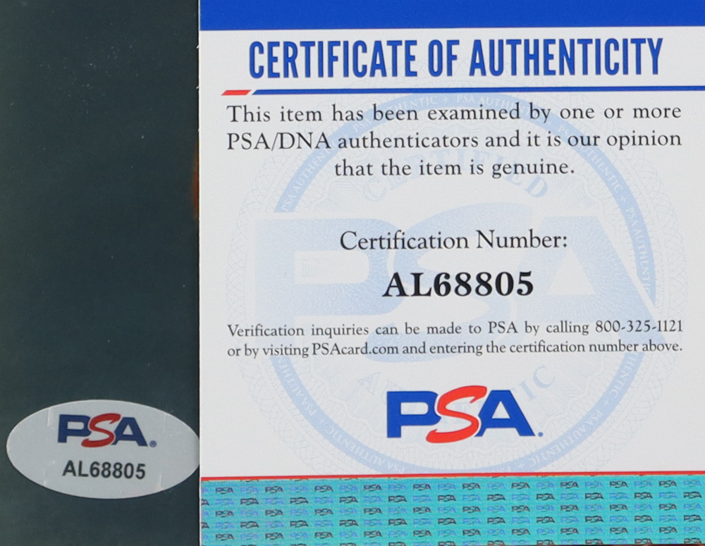 The autograph includes an official PSA/DNA hologram and matching COA for authenticity purposes.