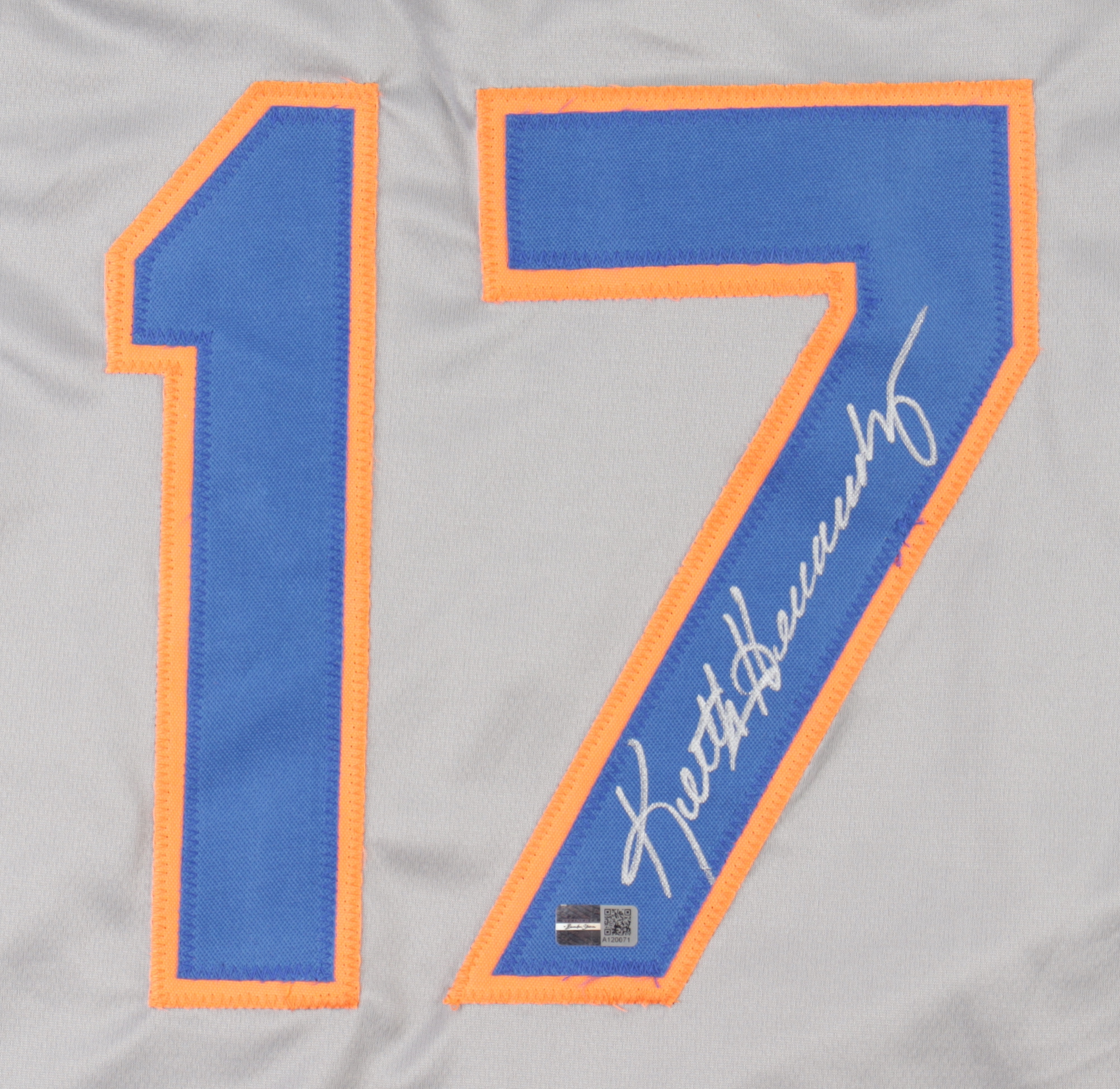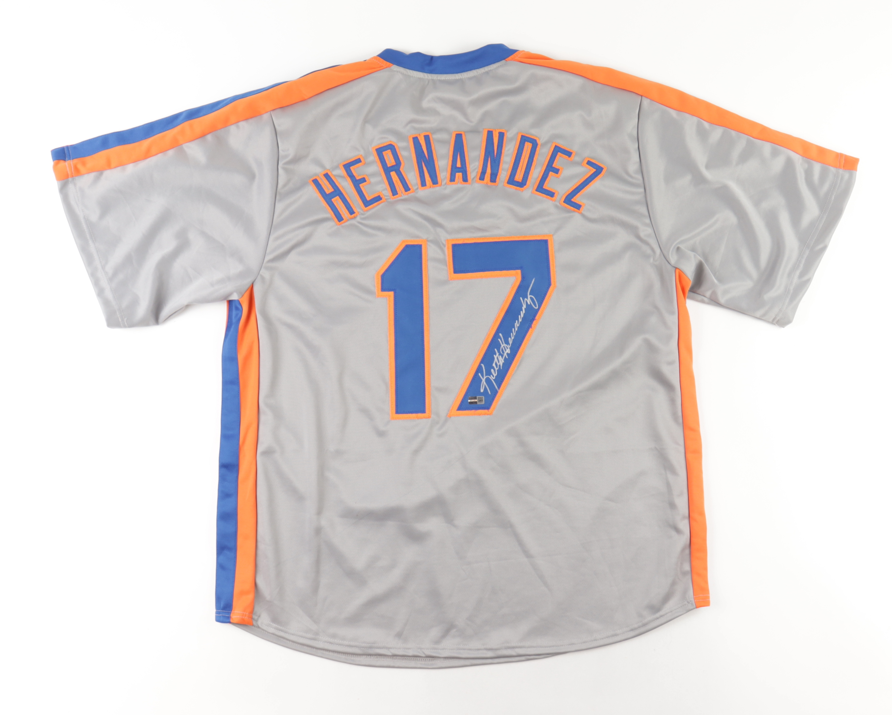 Custom on-field style jersey. Everything is sewn on, size XL. Hand-signed by Keith Hernandez.
