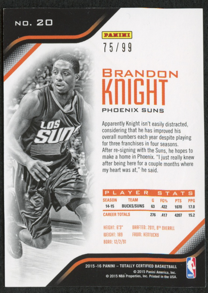 2015-16 Totally Certified Mirror Blue #20 Brandon Knight
