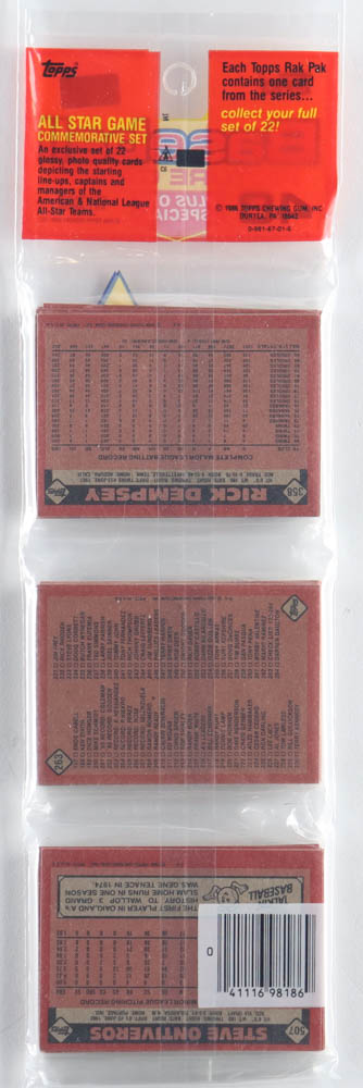 1986 Topps Baseball Picture Cards Rack Pack with (49) Cards