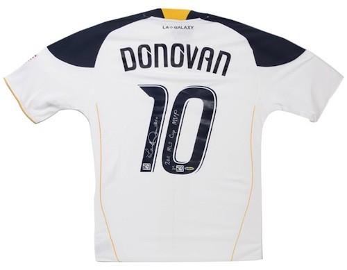 Adidas authentic on-field style jersey has been hand-signed and inscribed in silver paint pen by Landon Donovan. Hand-numbered limited edition #/110.
