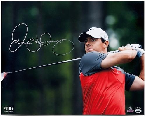 Photo measures 16" x 20" in size and has been hand-signed in silver paint pen by Rory McIlroy.