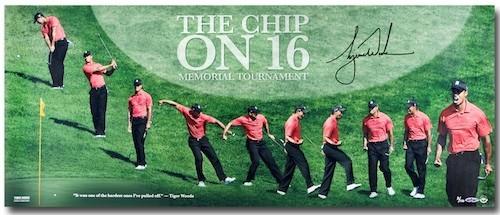 There are so many signature moments in Tiger Woods’ illustrious career in which fans can recall exactly where they were and what they were doing.Add July 3, 2012 to that list of magical moments. With three holes to play Tiger trailed the leader Rory Sabbatini by two strokes. Tiger hit his par 3 tee shot 205 yards into the rough all but eliminating any practical shot at tying Sabbatini on the 16th hole.But in classic Tiger Woods fashion, he showed off his courage and his delicate touch with a perfectly-placed chip from 50 feet away that rolled in for birdie and tied him for the lead. Tiger celebrated his vintage birdie chip, with a vintage Tiger Woods fist pump.Woods birdied three of his last four holes to win the Memorial Tournament and earn him his 73rd victory, but it was the chip on 16 that will forever be remembered.