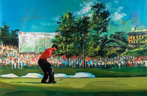 Tiger Woods' amazing win at the 2008 U.S. Open despite a severely injured leg will go down as one of the classic major tournament performances in golf history. Acclaimed sports artist Malcolm Farley has depicted Tiger's memorable victory at the tournament - held June 9-16, 2008, at Torrey Pines GC in La Jolla, Calif. - with this magnificent rendering of Tiger on his way to winning his 14th majors championship.