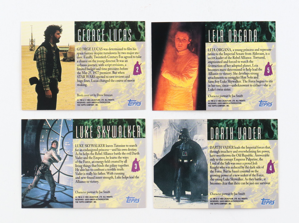 1993 Topps Star Wars Galaxy Series 1 Complete Set with Darth Vader #4, Leia Organa #5, Luke Skywalker #3 & George Lucas #2 (140) Cards