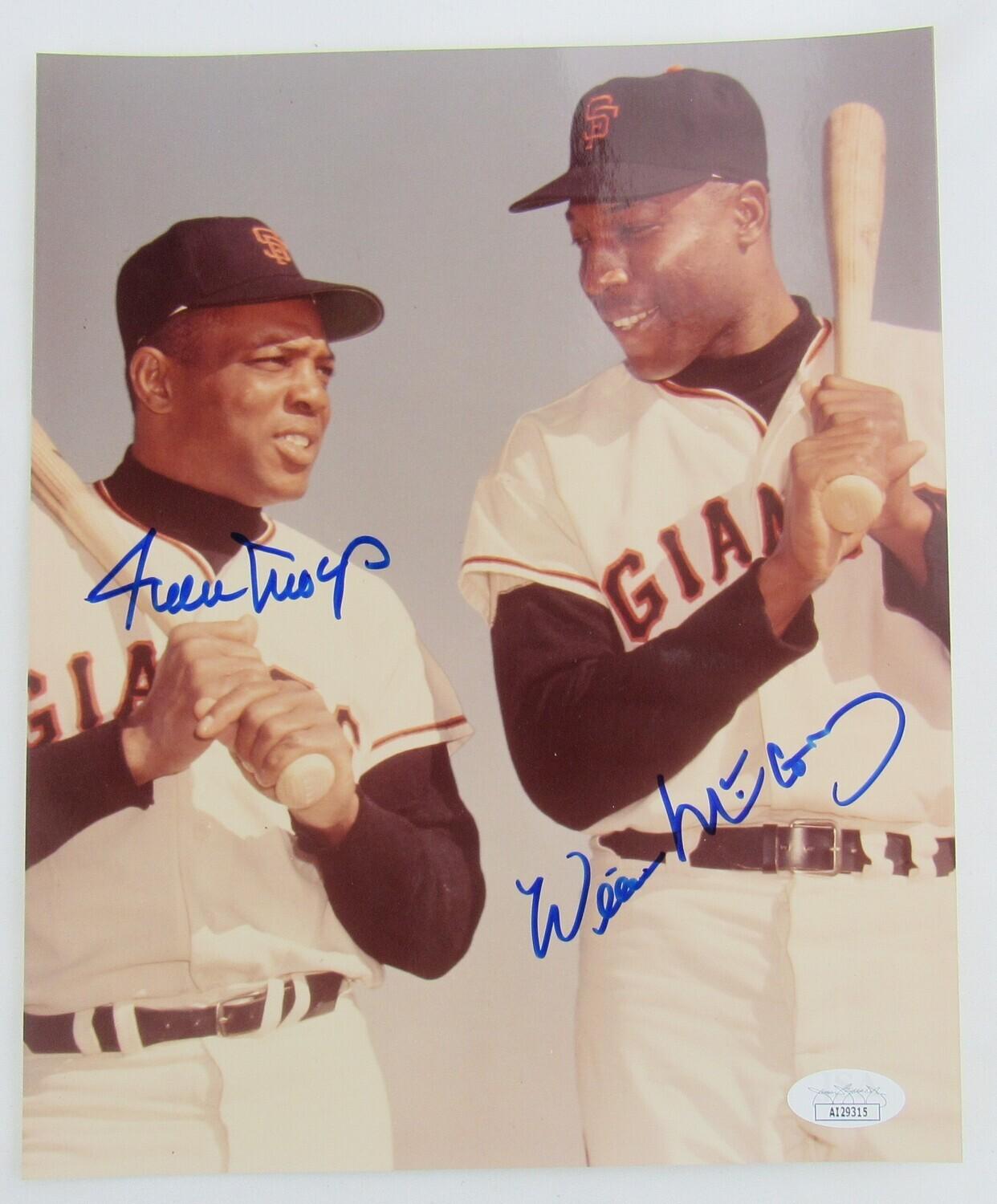 Photo measures 8" x 10" in size and has been hand-signed by Willie Mays (San Francisco Giants, HOF) and Willie McCovey (D. 2018, San Francisco Giants, HOF).