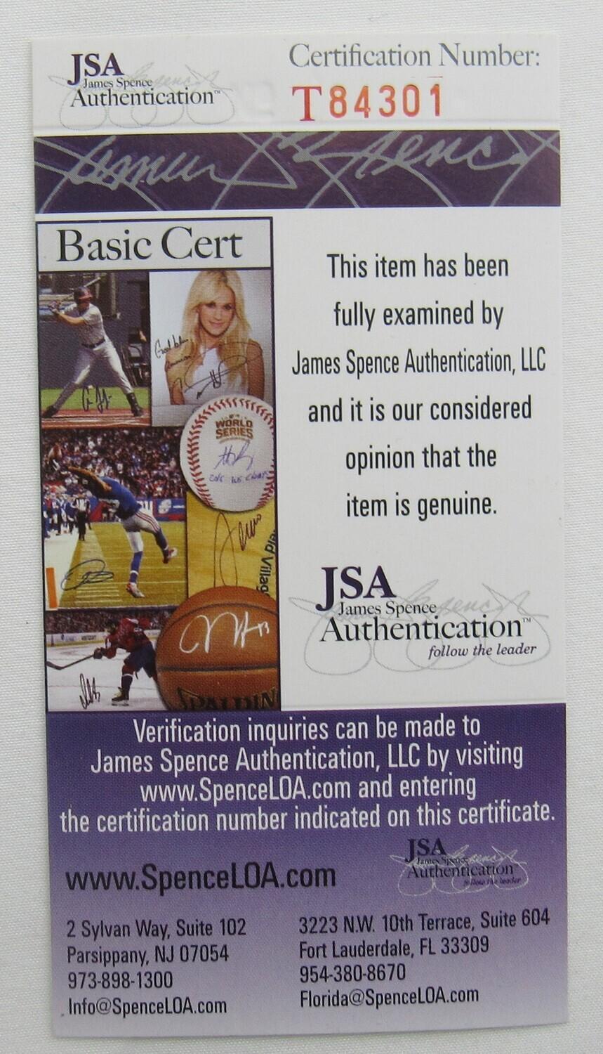 The autograph includes an official James Spence Authentication (JSA) hologram and matching COA for authenticity purposes.