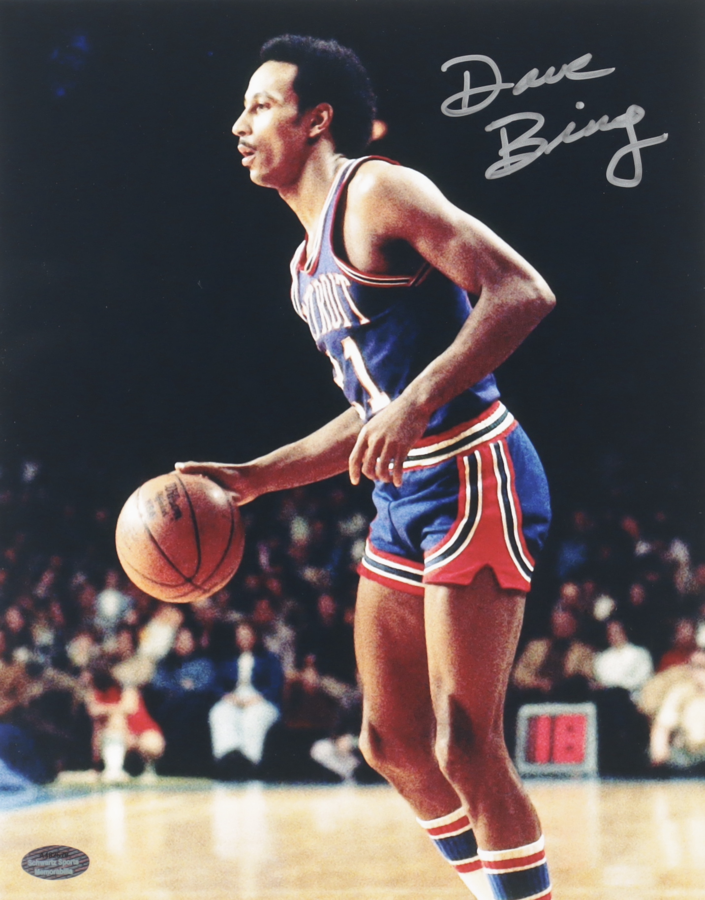 Photo measures 8" x 10" in size and has been hand-signed by Dave Bing (Detroit Pistons, HOF).