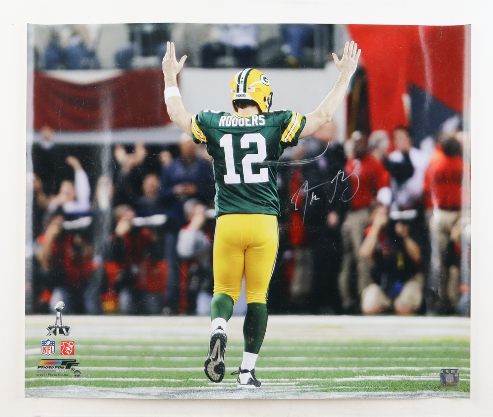 Photo measures 20" x 24" in size and has been hand-signed by Aaron Rodgers. The photo is Limited Edition and has been hand-numbered #7/12. (Green Bay Packers)