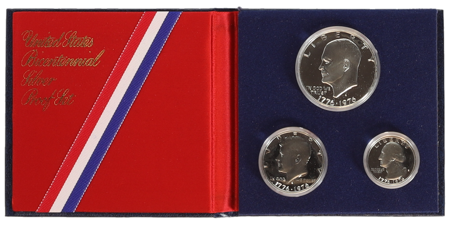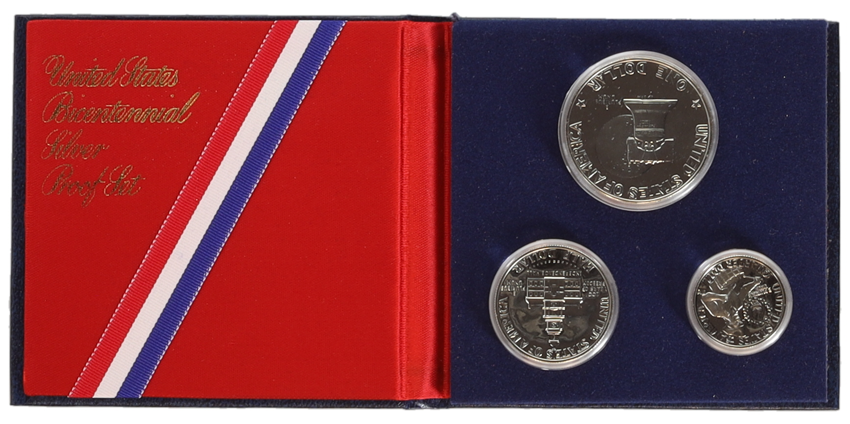1776 - 1976 United States Bicentennial Silver Proof Set with (3) Coins