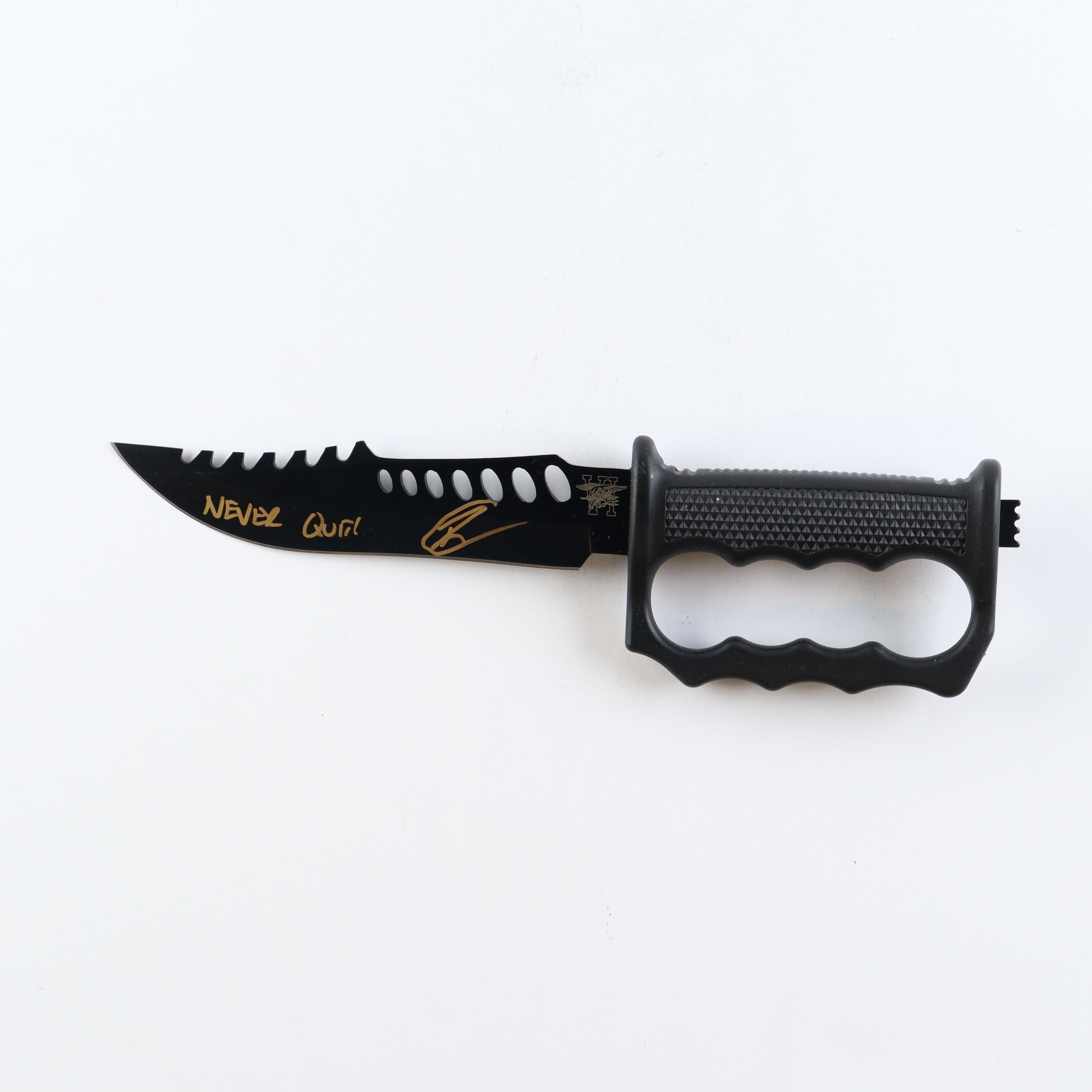 Robert O'Neill Signed Navy SEAL Knuckle Duster Tactical Knife Inscribed "Never Quit!" (PSA)