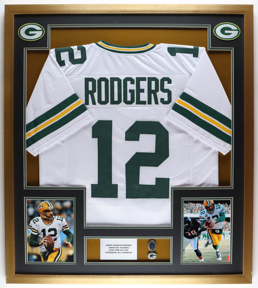 Aaron Rodgers Packers Custom Framed Jersey Display with Super Bowl XLV Pin