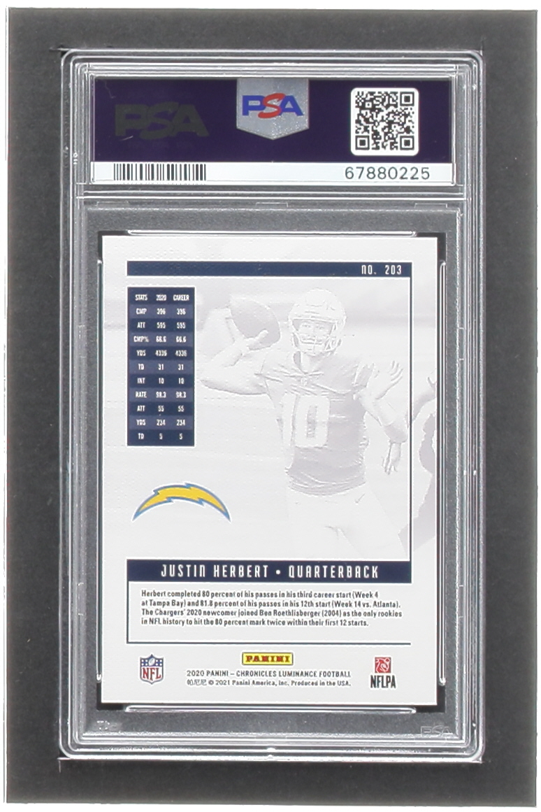 Justin Herbert 2020 Panini Luminance Pink #203 CHRONICLES RC (PSA 9)