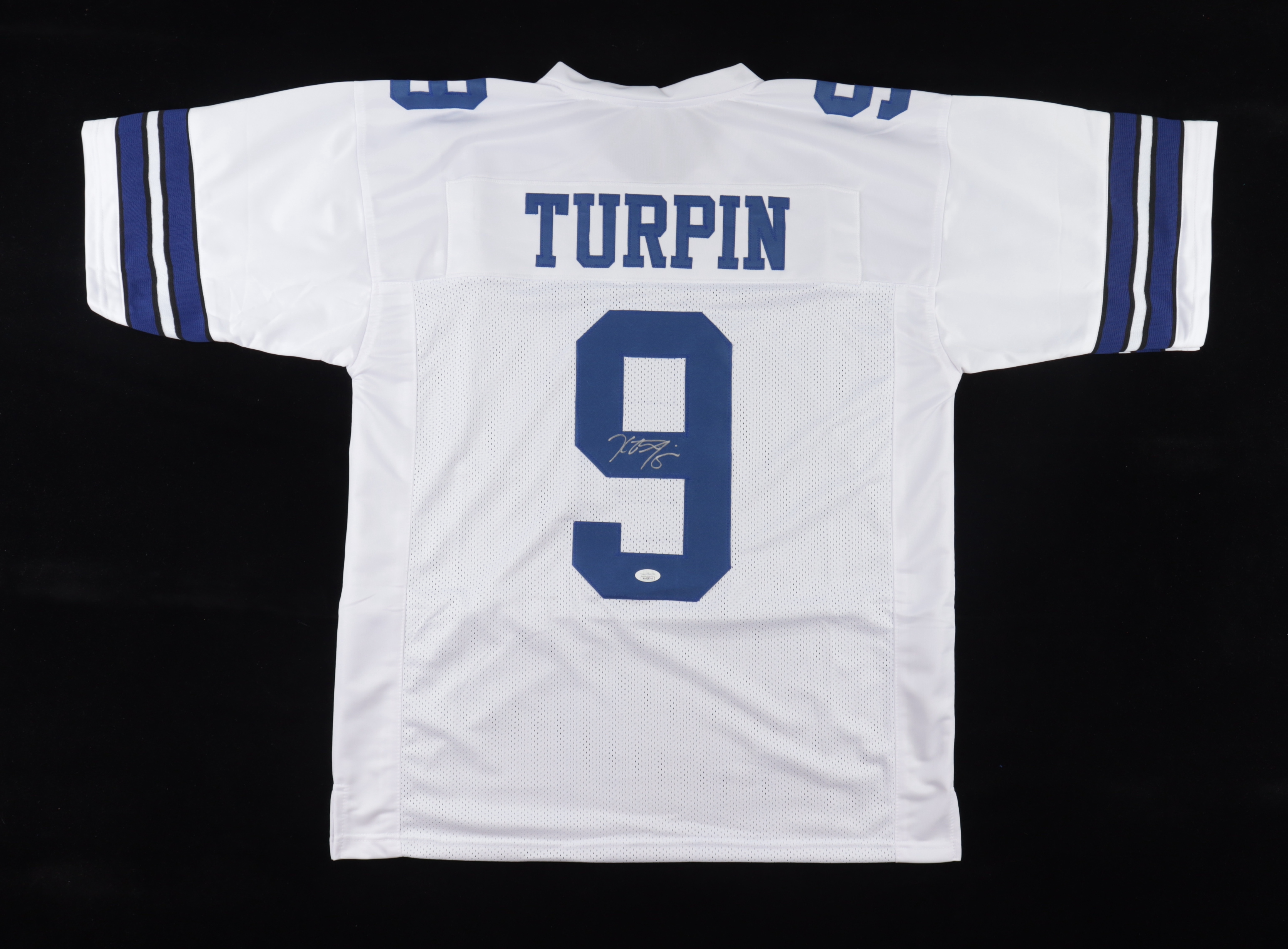Custom on-field style jersey. Everything is sewn on, size XL. Hand-signed by KaVontae Turpin.