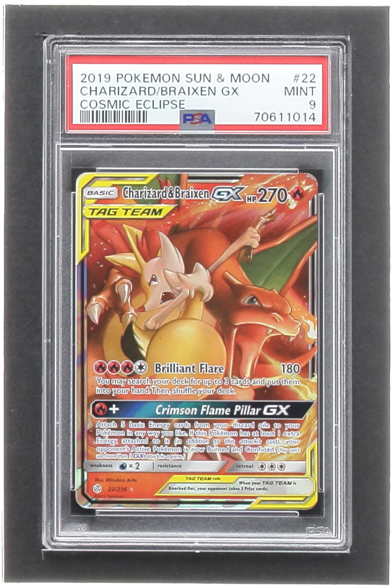 Charizard & Braixen GX Pokemon 2019 Cosmic Eclipse #22 (PSA 9)