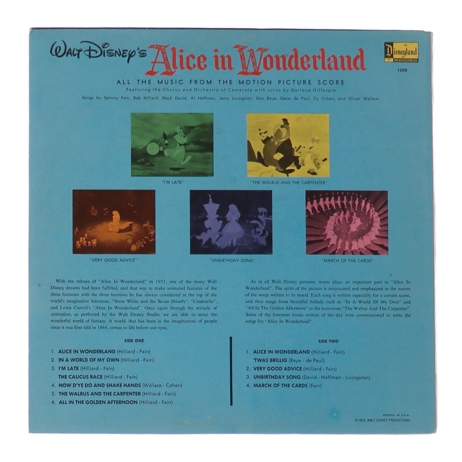 1968 Walt Disney's "Alice in Wonderland" Original Motion Picture Soundtrack Vinyl Record Album