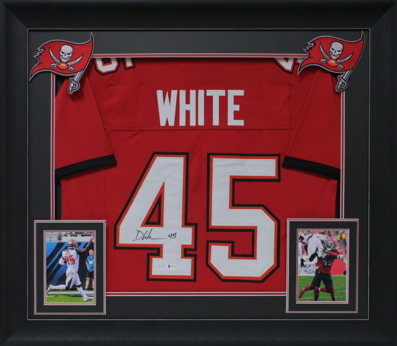 Custom frame measures 32" x 37" in size and features a jersey that has been hand-signed by Devin White.