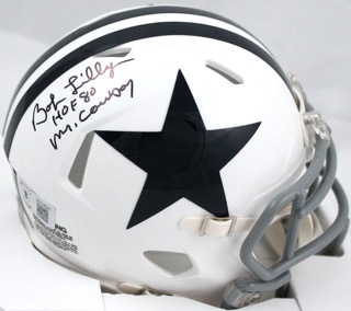 Riddell Dallas Cowboys Throwback 60-63 Speed Mini Helmet. Hand-signed and inscribed by Bob Lilly (HOF).