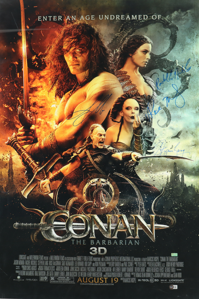 "Conan the Barbarian" 27x40 Movie Poster Signed by (4) with Jason Momoa, Rachel Nichols, Stephen Lang & Rose McGowan (Beckett)