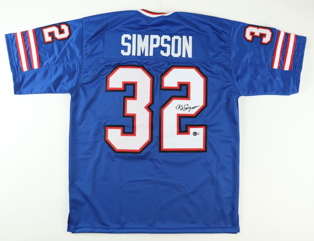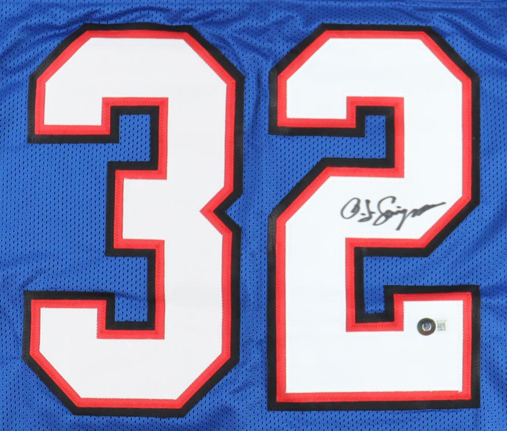 Custom jersey. Everything is sewn on, size XL. Hand-signed by O. J. Simpson (HOF).