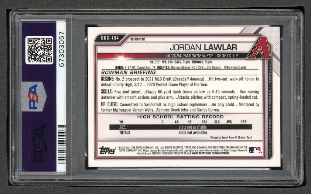 Jordan Lawlar 2021 Bowman Chrome Draft Refractors #BDC194 (PSA 9)