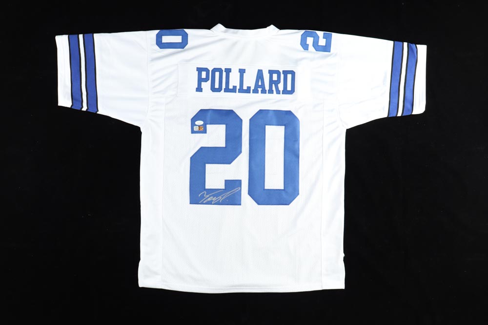 Custom jersey. Everything printed on, size XL. Hand-signed by Tony Pollard.
