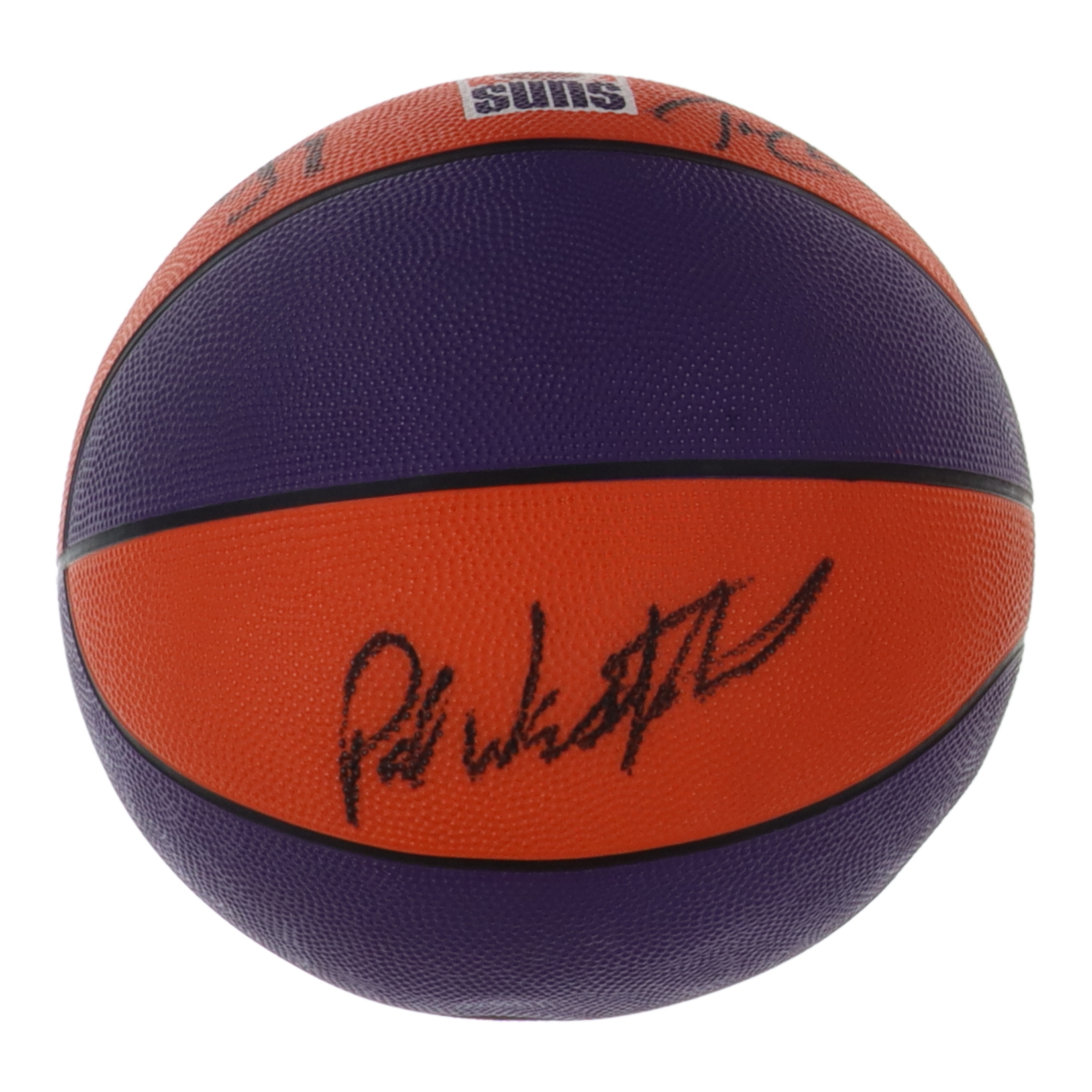 Spalding Official Phoenix Suns logo basketball has been hand-signed by Charles Barkley, Kevin Johnson, Paul Westphal and Danny Ainge.