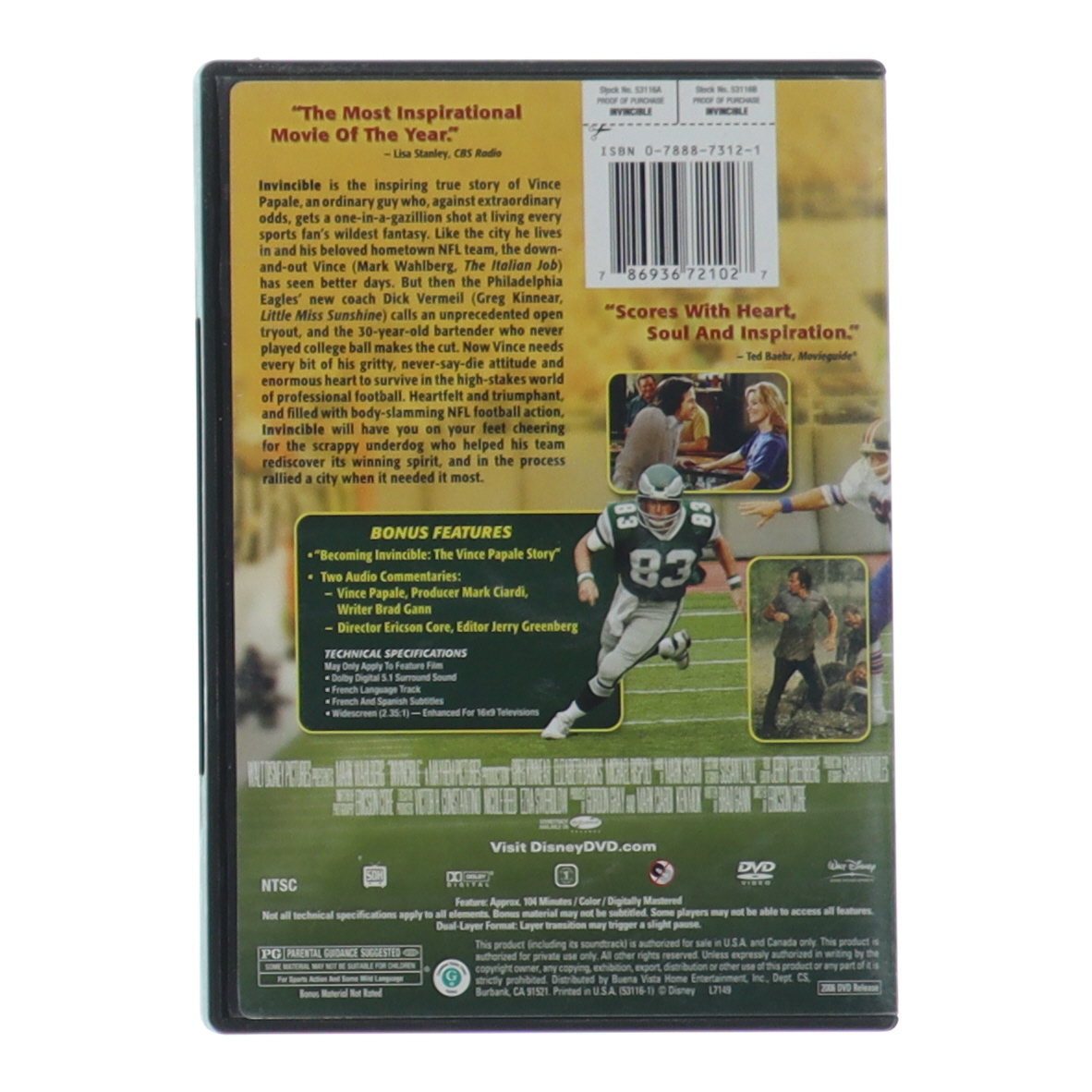 Invincible DVD has been hand-signed by Vince Papale (Philadelphia Eagles). Case includes DVD.
