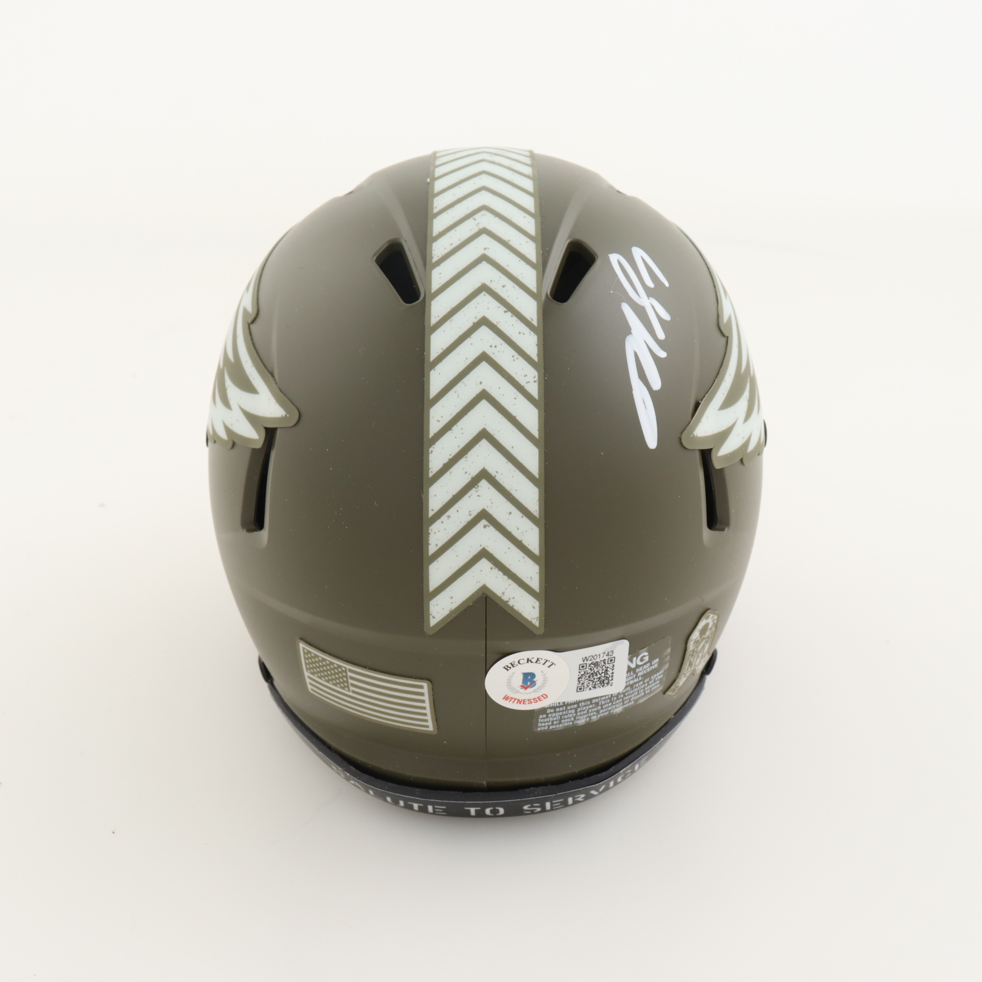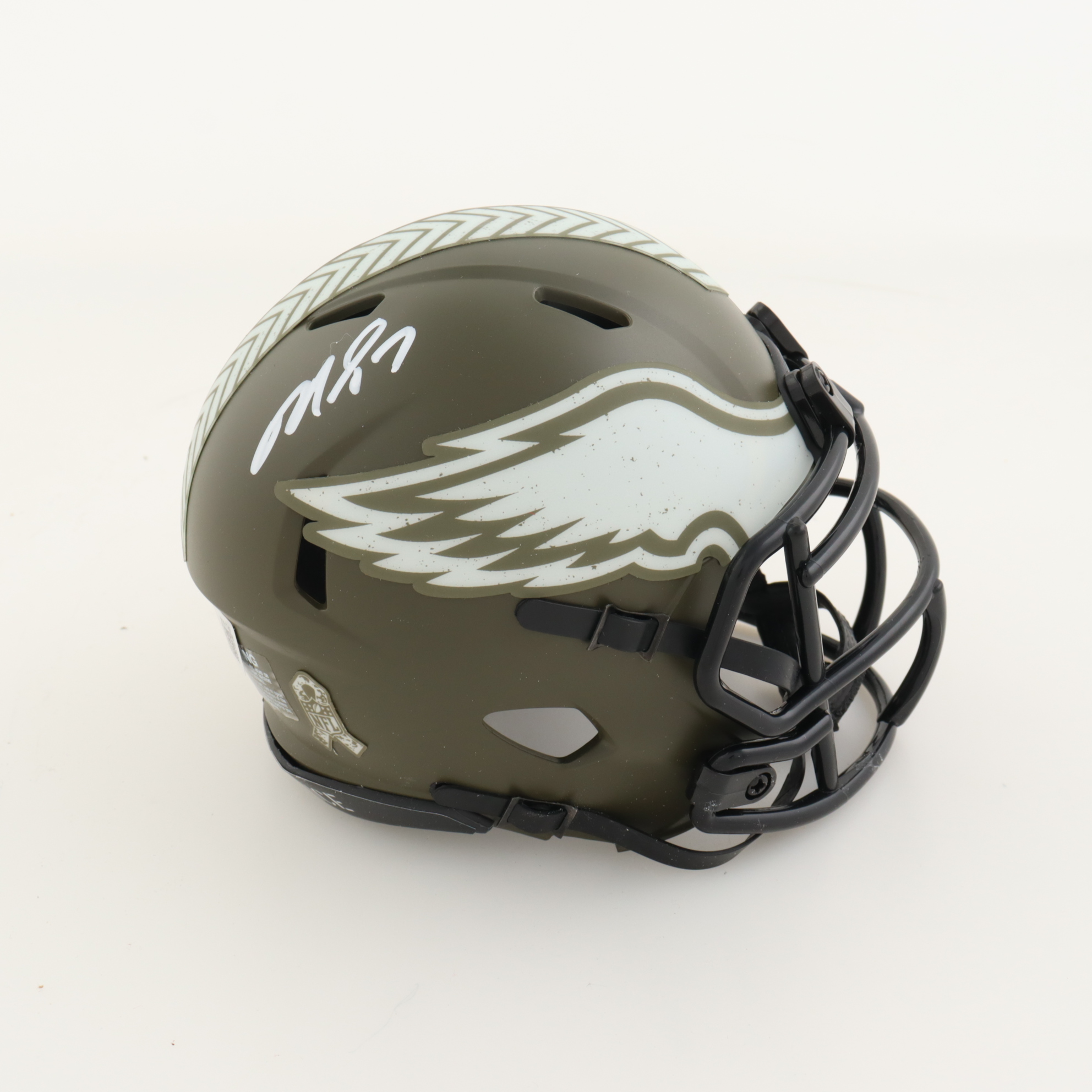 Riddell Philadelphia Eagles Salute To Service Alternate Speed mini helmet. Hand-signed by Michael Vick.