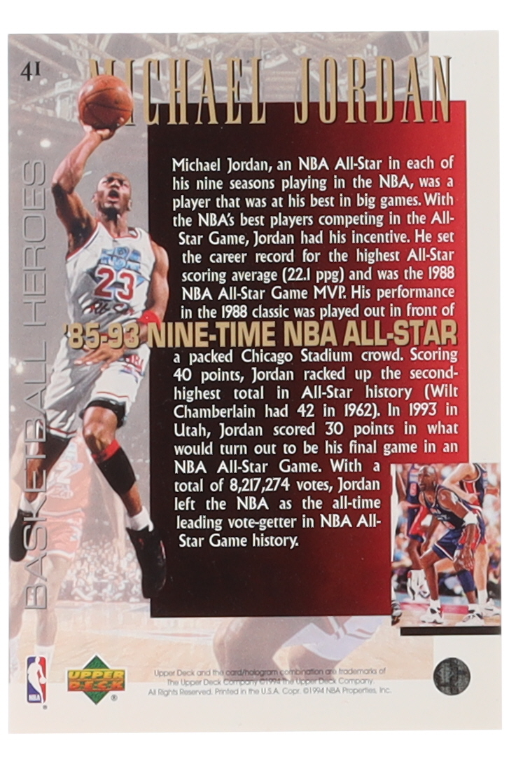Michael Jordan 1994-95 Upper Deck Jordan Heroes Jumbos #41 / 1985-93 9-Time NBA All-Star