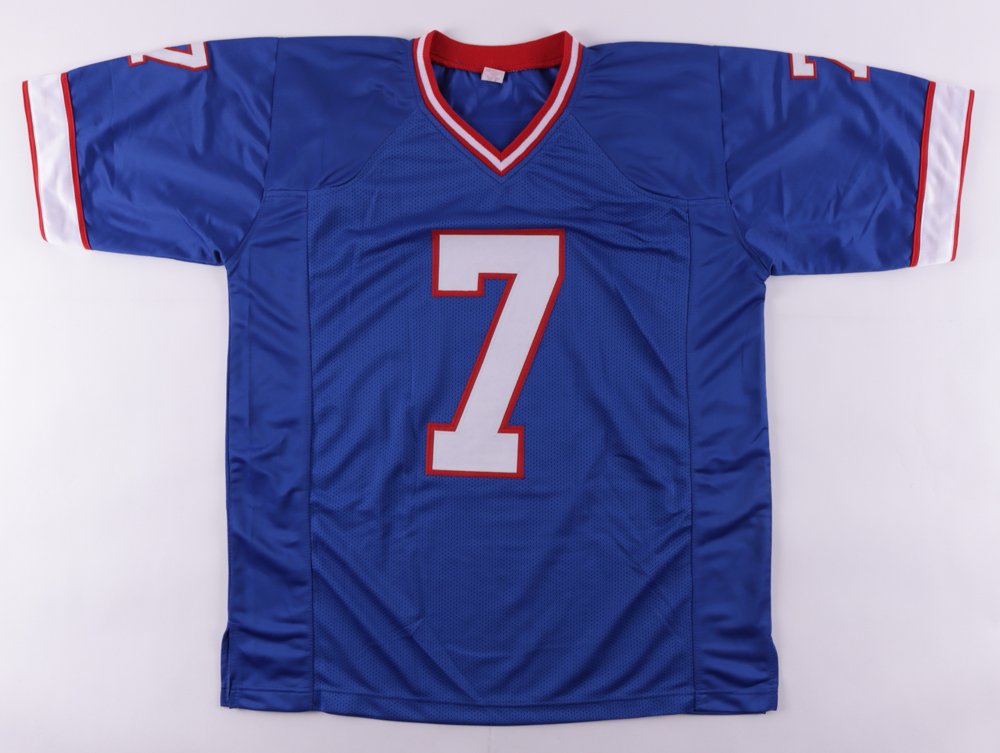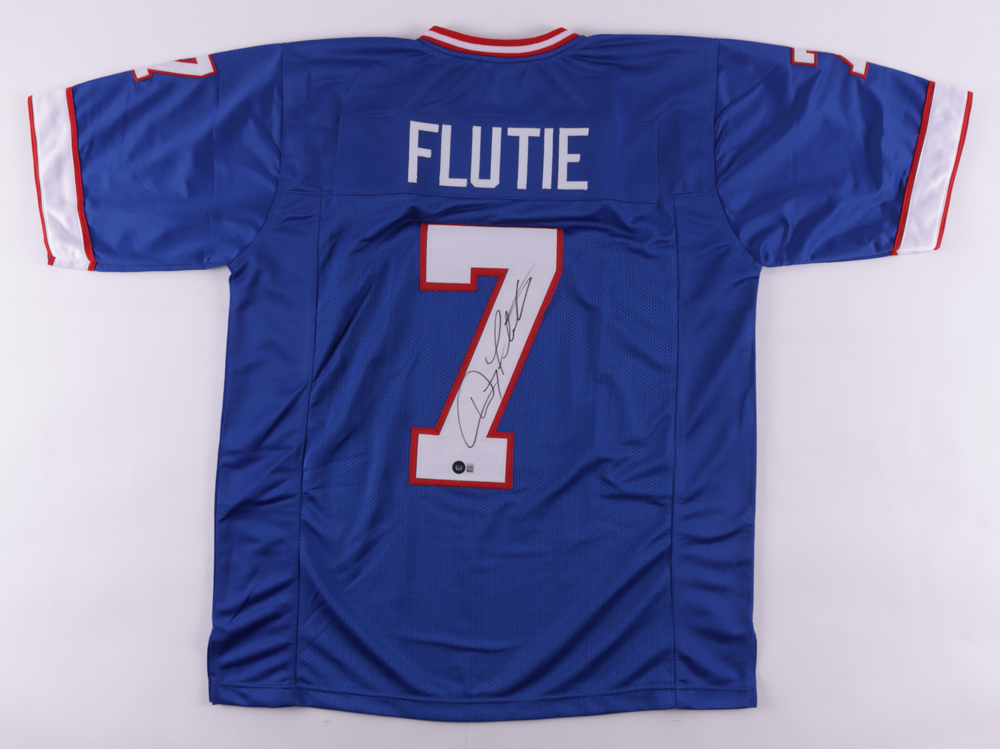 Custom jersey. Everything is sewn on, size XL. Hand-signed by Doug Flutie.
