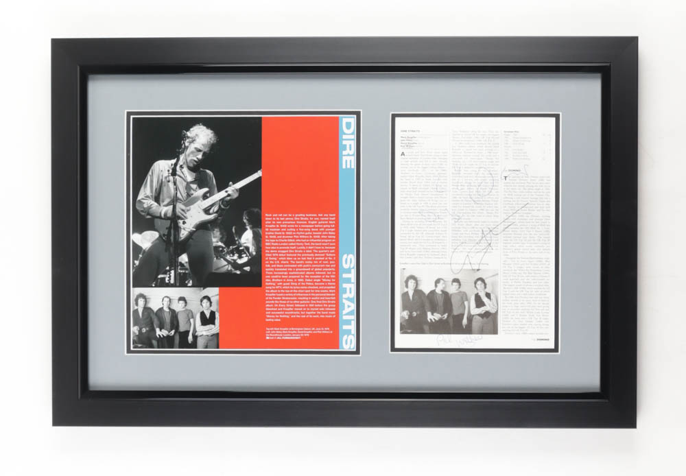 "Dire Straits" Custom Framed Magazine Page Display Signed By (4) With Mark Knopfler, David Knopfler, Pick Withers & Guy Fletcher (Beckett)
