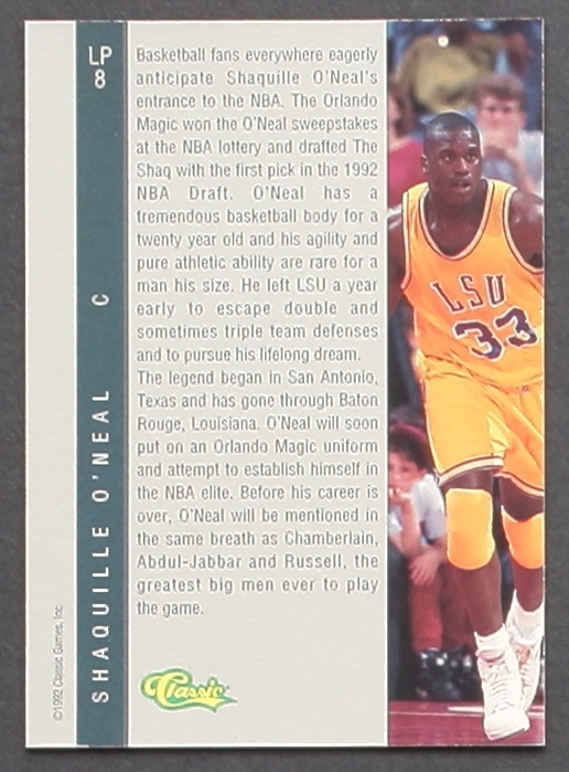 Shaquille O'Neal 1992 Classic Four Sport LPs #LP8 RC