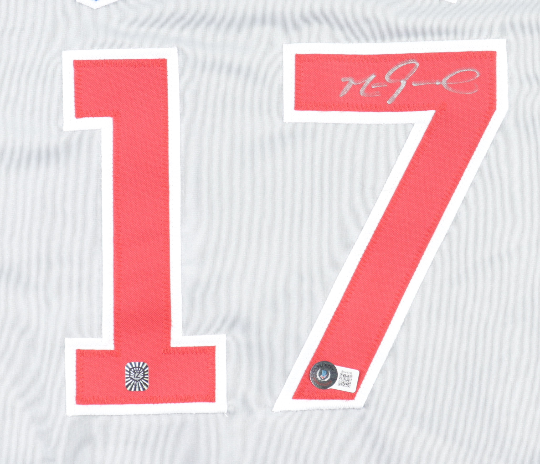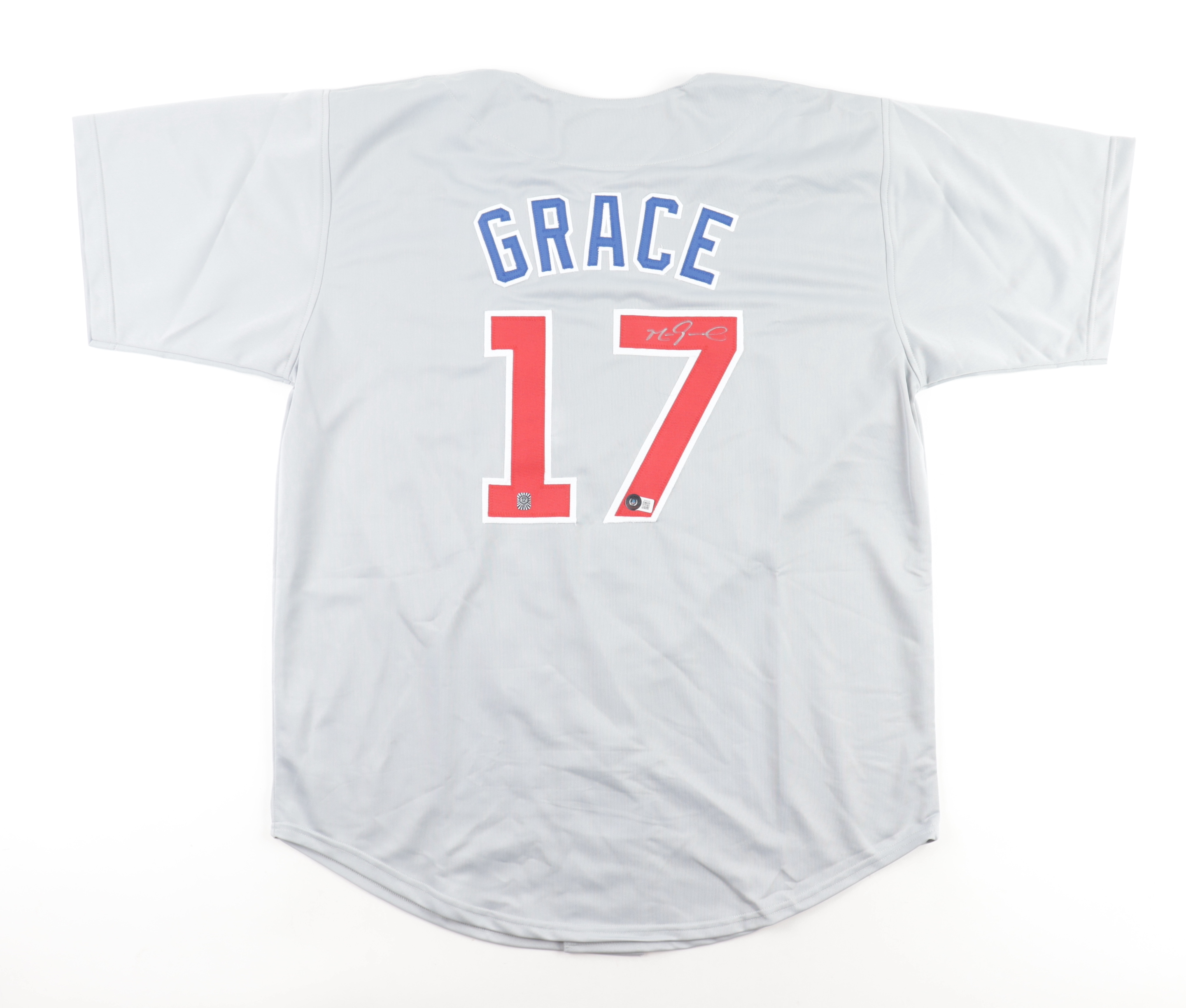 Custom on-field style jersey. Everything is sewn on, size XL. Hand-signed by Mark Grace.