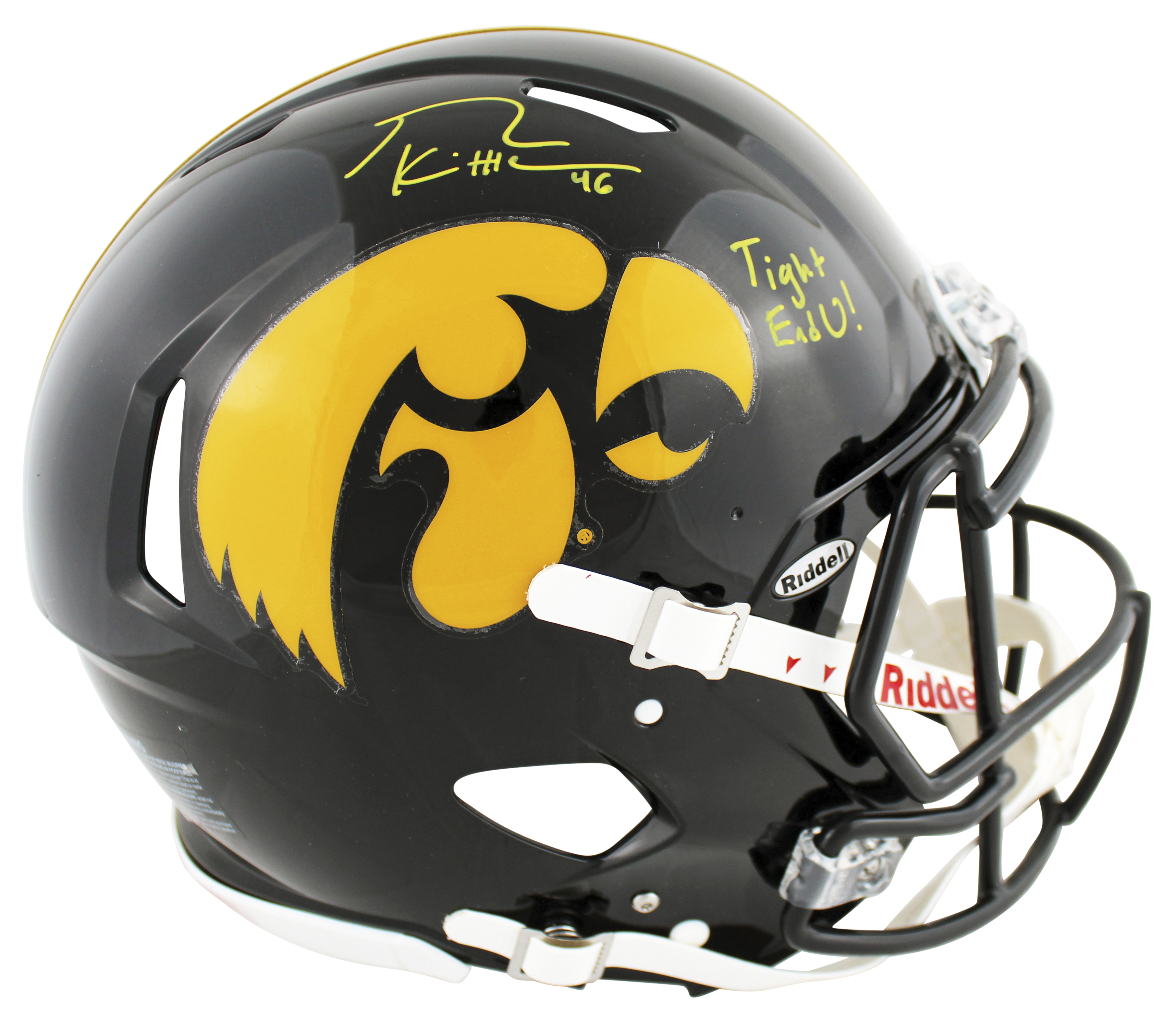 Riddell Iowa Hawkeyes full-size authentic on-field speed helmet. Has been hand-signed by George Kittle.