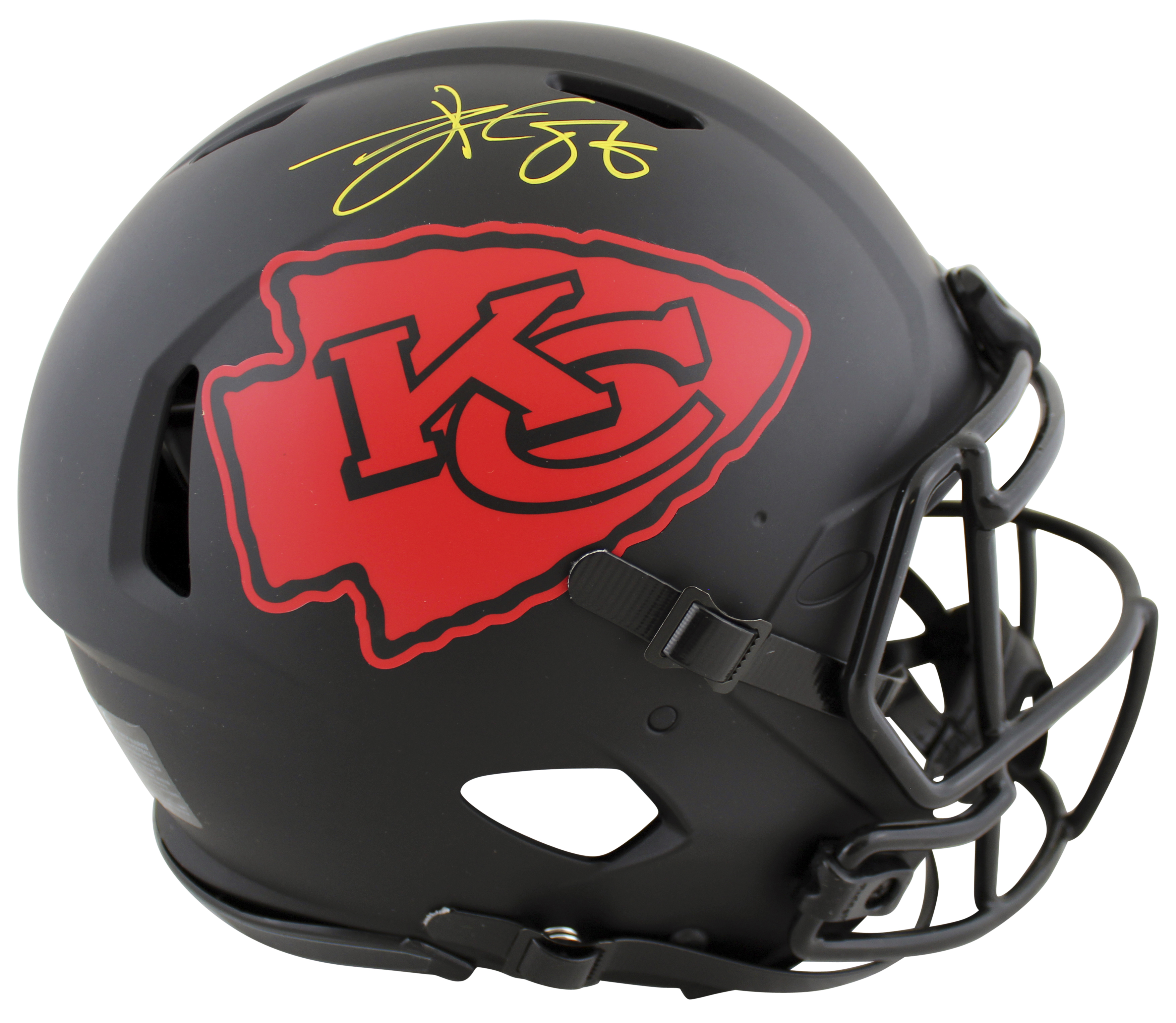 Riddell Kansas City Chiefs full-size authentic on-field eclipse alternate speed helmet. Has been hand-signed by Travis Kelce.