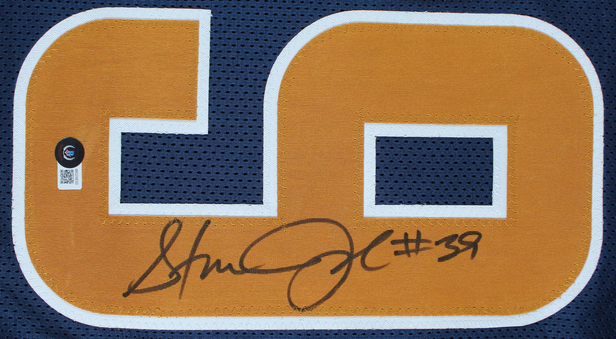 Custom style jersey. Everything is sewn on, size XL. Hand-signed by Steven Jackson.